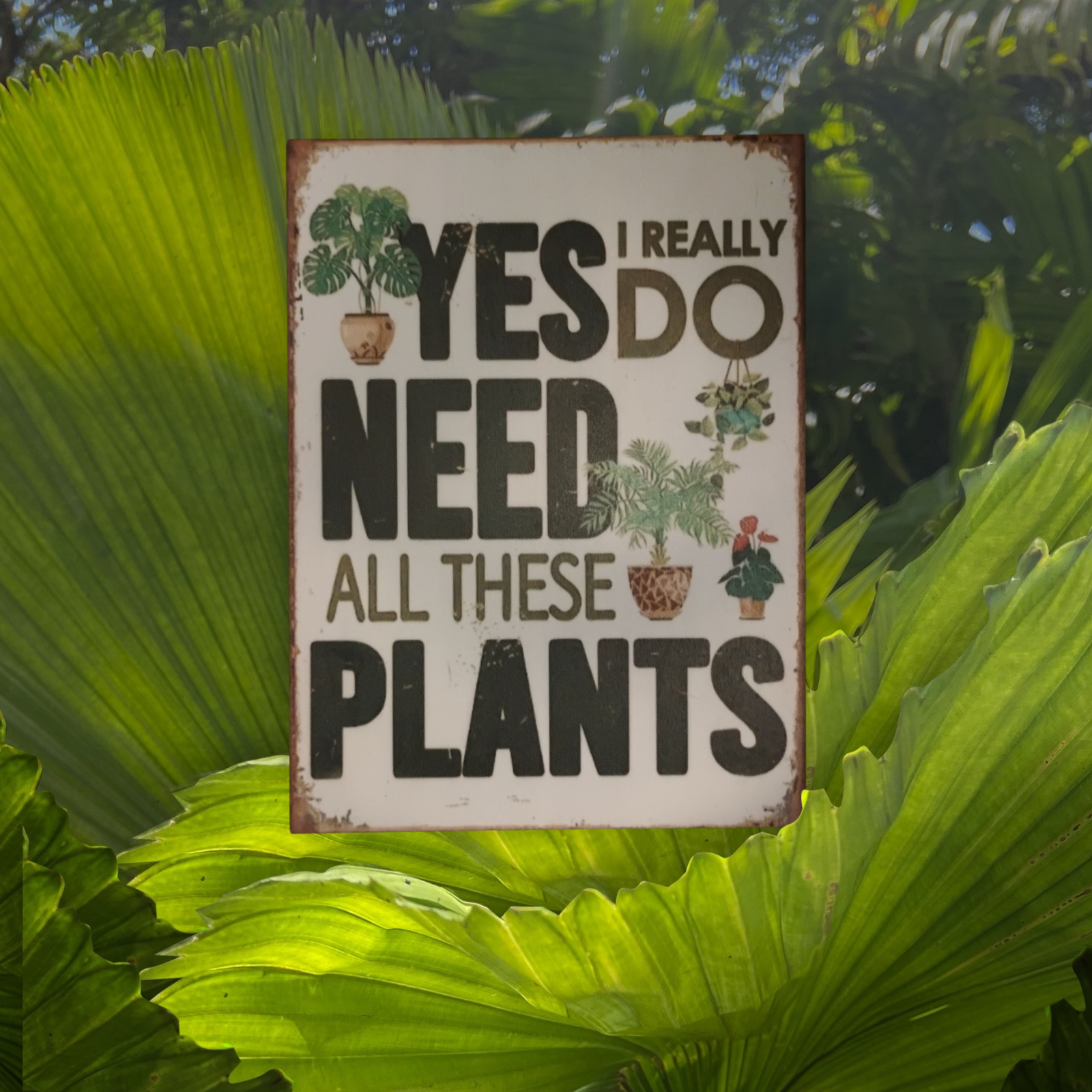 Rustic Wooden Plant Lover Sign 6x8 – “Yes I Really Do Need All These Plants” Wall Décor